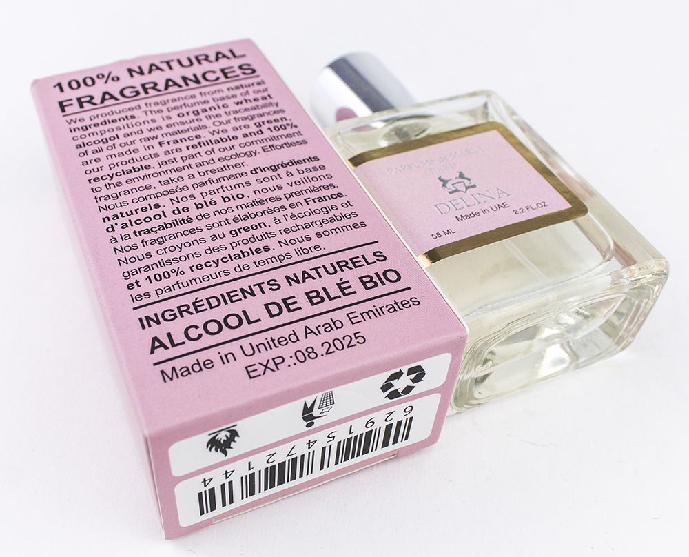 Delina — нежный, чувственный, ласковый аромат для изысканных, элегантных молодых леди, представленный в 2017 году французской маркой Parfums de Marly. Аромат посвящен божественному звучанию турецкой розы, которая, как королева, окружена своими верными подданными. Его трепетная цветочная душа скрывается за матовым нежно-розовым стеклом элегантного классического флакона, украшенного шелковистыми кистями. С первых нот парфюм восхищает весенней свежестью ревеня, дополненной горьковато-зелеными акцентами бергамота, экзотичной, самобытной сладостью личи и вкраплениями пряных нот мускатного ореха. Центр композиции заполняет сладкий, душистый, женственный аромат турецкой розы, окружённый трепетом прохладных аккордов нежного лесного ландыша и яркого помпезного пиона. Благоухание благородного дерева в окружении чувственных нот мускуса, ладана и ванили, окутывает композицию теплым и волнующим шлейфом, воспевающим оду неописуемой женственности.